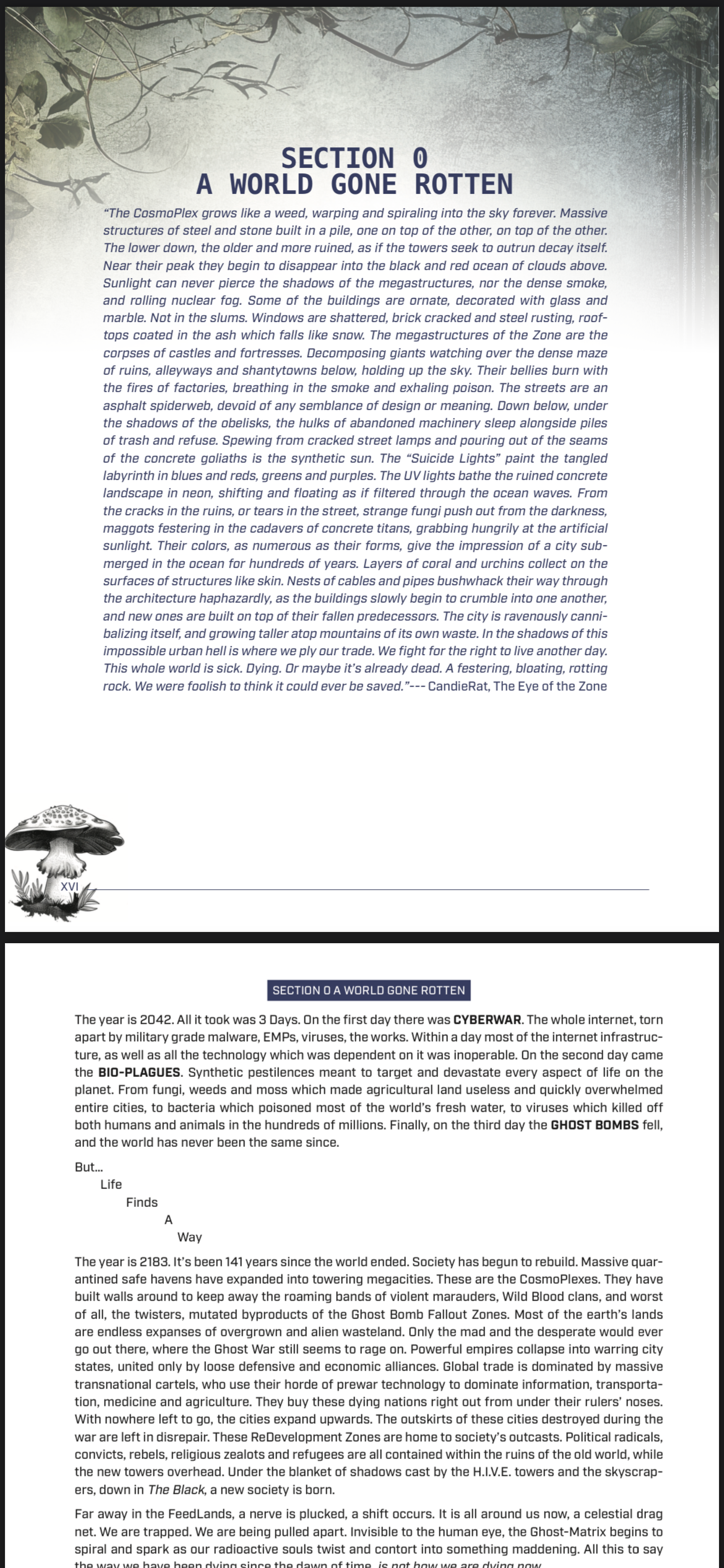 Shoot, stab and smile your way through the cold streets of the Zone, with a system that’s all about rolling with spite, and losing with style!